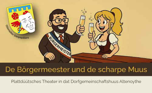 Plattdeutsches Theater: „De Börgermeester und de scharpe Muus“ 14.02.2026, 15:00 Uhr + 5 weitere Termine Dorfgemeinschaftshaus Altenoythe Theater und Bühne