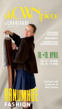 Am 18. und 19. April lädt das Modelabel shOWNpiece zum Handmade Fashion Pop-up im Charivari in Vechta ein. Hinter dem Label steht Joana, die jedes Kleidungsstück individuell und auf Bestellung fertigt.