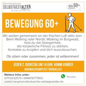 Bewegung 60+ mit den SelbstgestALTERn 13.01.2026, 14:00 Uhr + 11 weitere Termine Burgwald-Parkplatz Dinklage Bürgerservice
