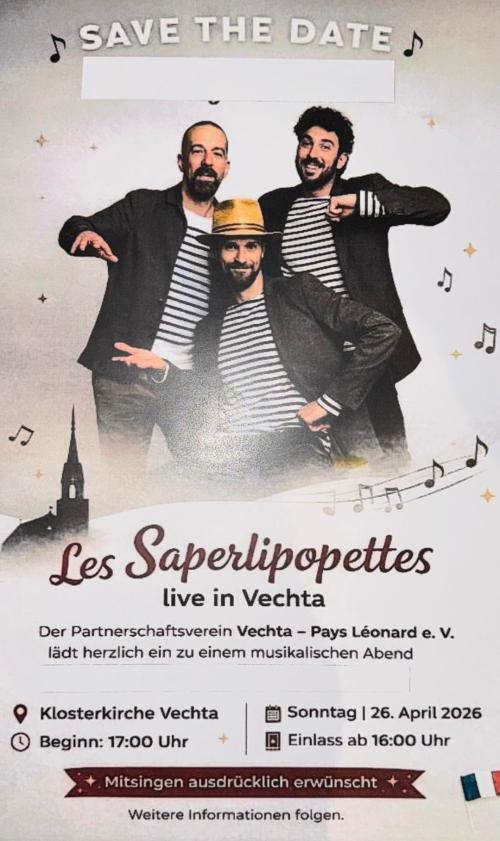 Les Saperlipopettes live in Vechta 26.04.2026, 17:00 Uhr Ev.-luth. Klosterkirche Konzerte und Festivals