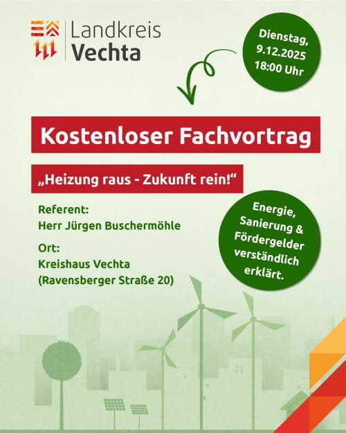 Vortrag über Heizkosten und Fördermittel 09.12.2025, 18:00 Uhr Kreishaus Vechta Vorträge und Lesungen