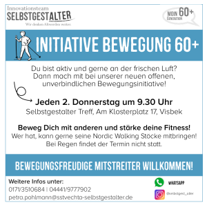 Initiative Bewegung 60+ 12.02.2026, 9:30 Uhr + 9 weitere Termine Offener Selbstgestalter-Treff Visbek Sport und Freizeit